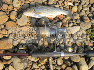 Сегодня последний день моего пребывания на Закарпатье, поэтому для начала решил обловить те воблеры, до которых не доходили руки. Сегодня пройду реку из города Иршава до села Лоза облавливая все интересные места. Китайский воблер фертнер (Fertner) выманивает голавлика из под веток дерева, которые свисают над водой. Глубина в месте ловли была 30 см.